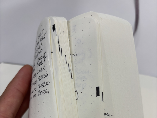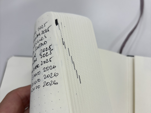 Over the years, I've been testing many ways of creating an INDEX to find things better in my notebooks (no, there is no "search option"). I haven't found any better technique than this one. The trick is making a small mark in the very edge of the page that you want to add to your index. In the first page of your notebook, keep all references aligned to these marks. When you want to find something, just blend your pages and you will quickly where you want!